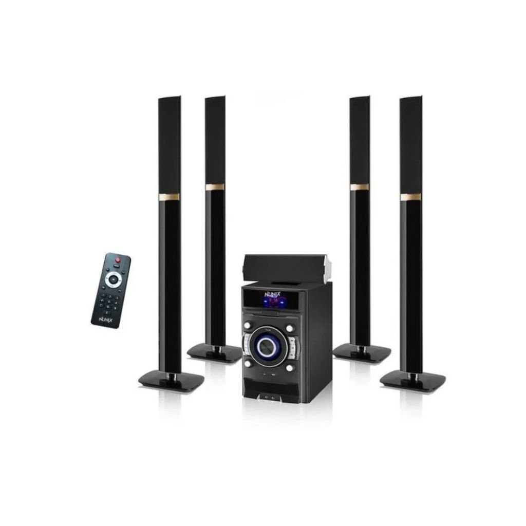 Immerse yourself in rich surround sound with the Nunix 5.1 CH Home Theatre System. Featuring Bluetooth, USB, FM radio, and remote control, it’s the perfect multimedia speaker set for home entertainment.
